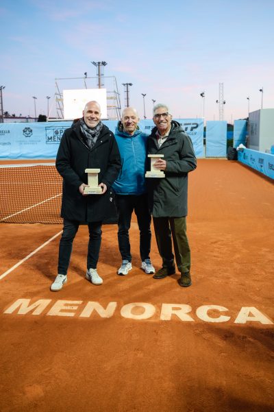 Por su parte, la organización del Open Menorca entregó tres trofeos conmemorativos, idénticos a los que se otorgarán a los campeones del torneo en la jornada final del 5 de abril, tanto a los dos extenistas como al propio club.